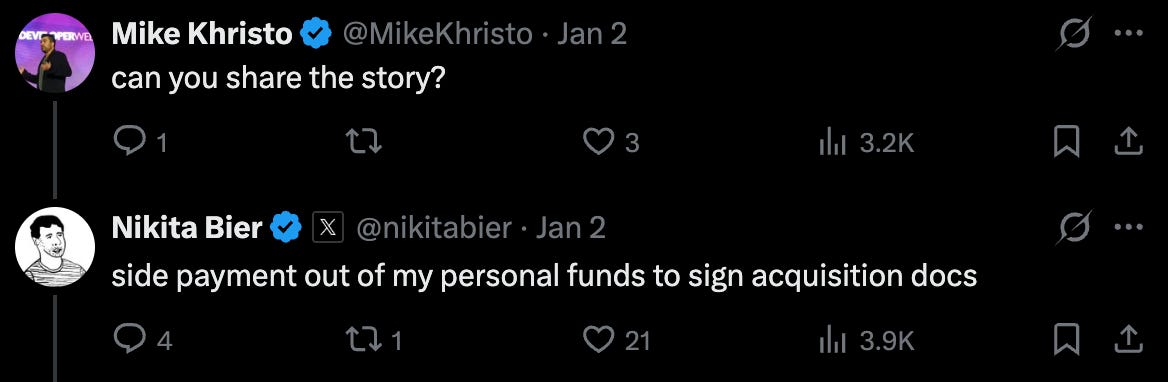 He links to a tweet by repeat founder Nikita Bier: